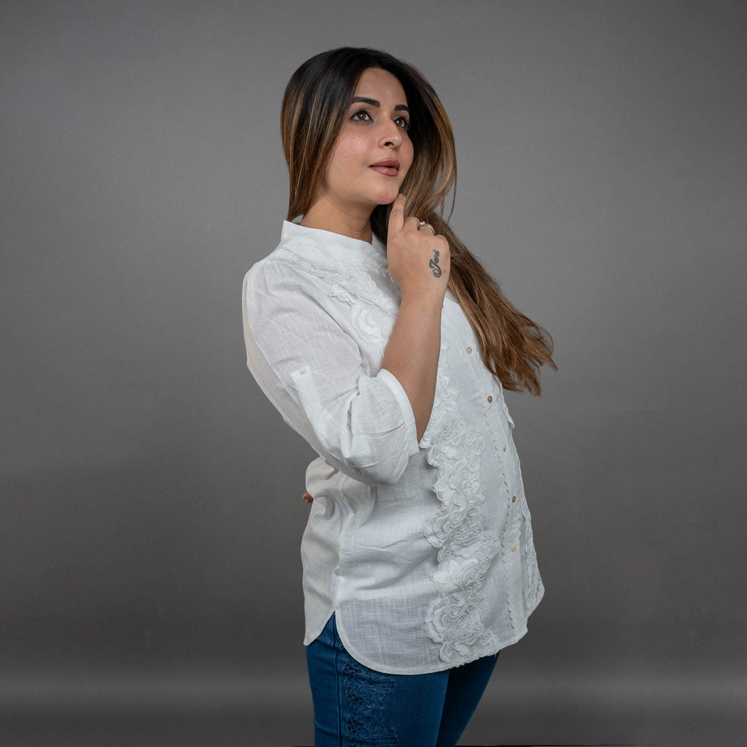 PRESENCE PLUS SIZE COTTON SHIRT WITH APPLIQUE